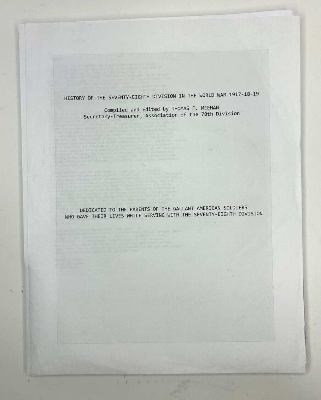History of the Seventy Eighth Division World War 1 Thomas F Meehan Paper Proof