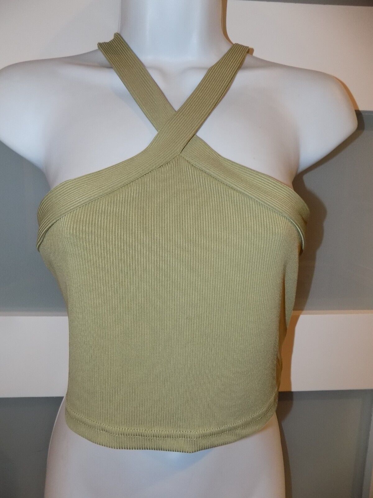 Shein Sage Green Ribbed Color Cropped Tank Top Size M NWOT