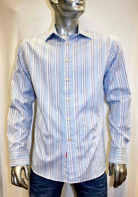 Men's Rufus White | Lt. Blue | Navy Striped Long Sleeve Button Down Shirt NWT