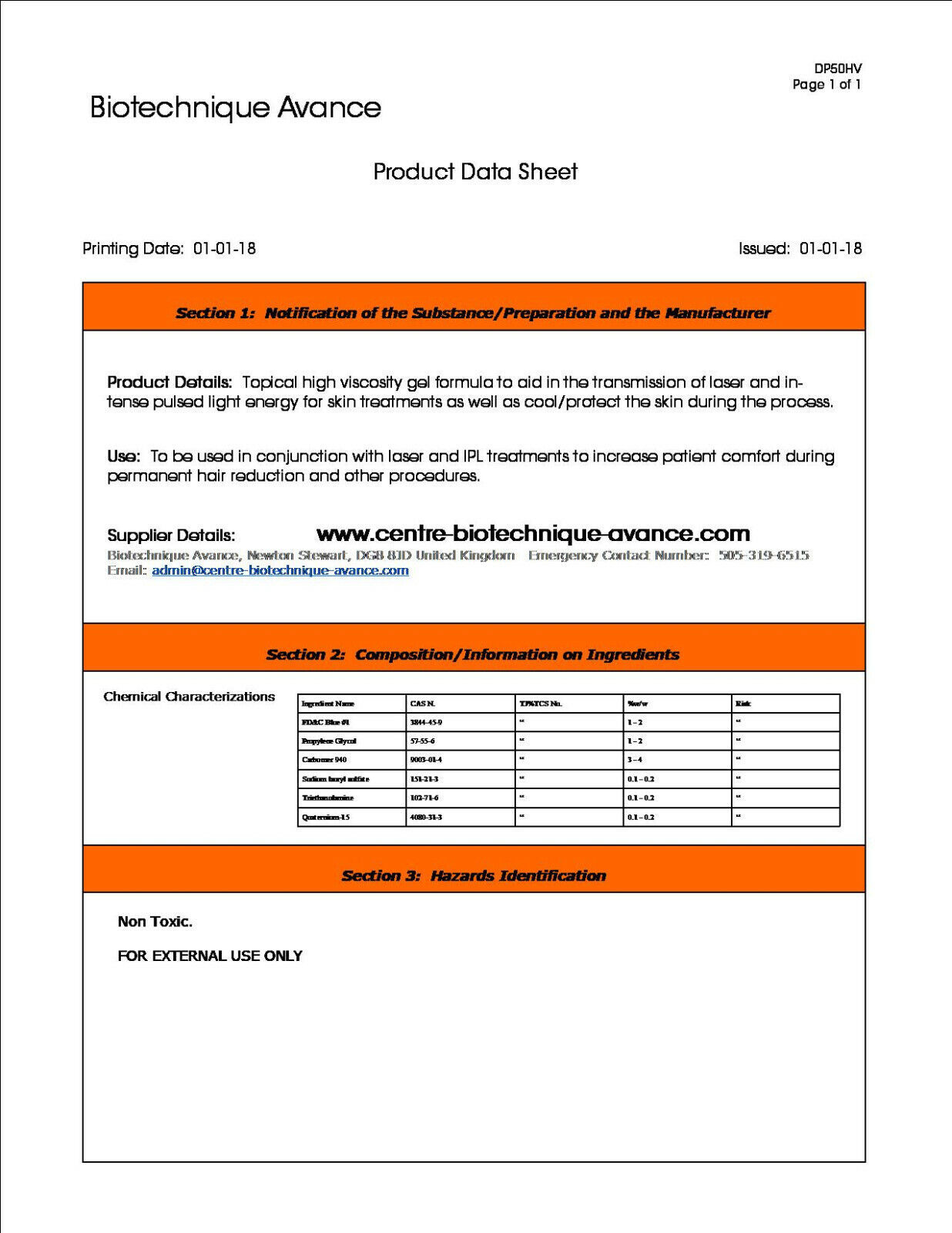 laser protection eyewear, 50ml Dermal Plast desensitizing gel, 50ml vein