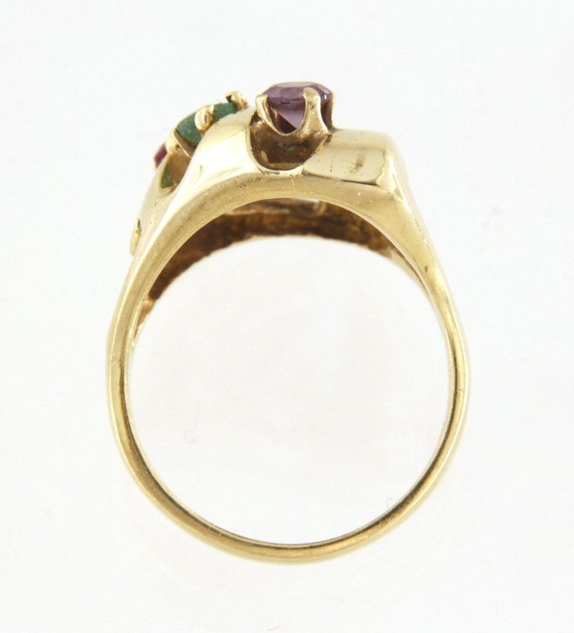 Type: Fashion RingWeight: 4.5Karat: 14ktMetal: Yellow GoldGender: Women'sStyle: FancySize / Length: 7.25Owner applied: N 14kStone 1 quantity: 3Stone 1 shape: RoundStone 1 color: MultiStone 1 weight (total): .45Condition:Used