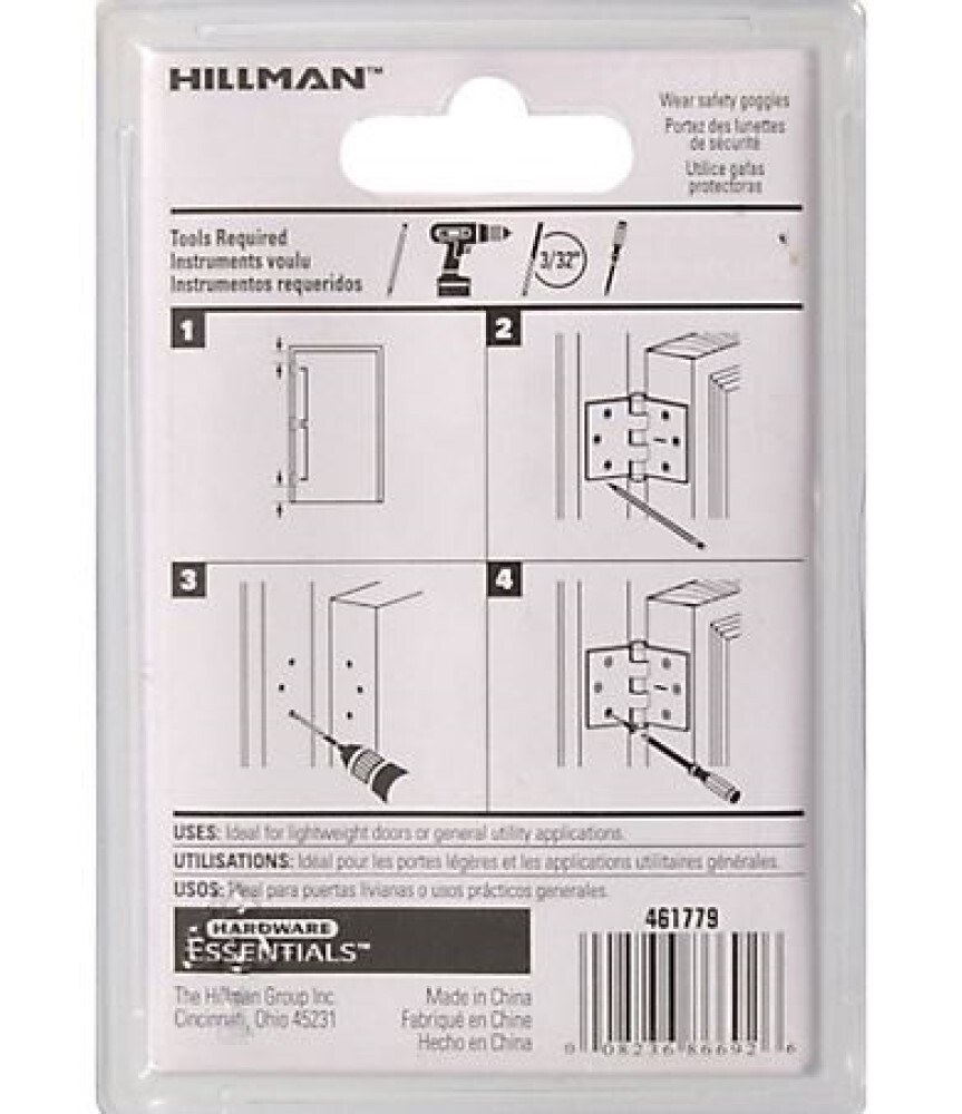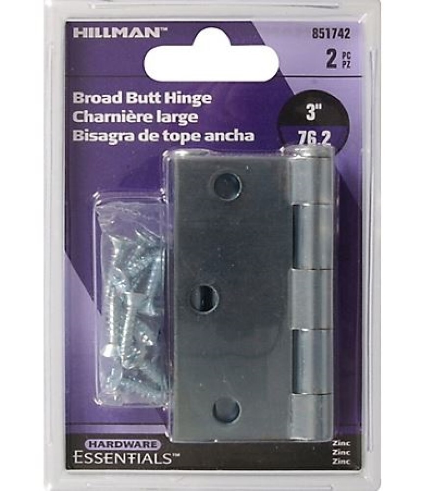 Hillman Hardware Essentials 851742 General Purpose Hinges Fixed Pin Zinc 3"