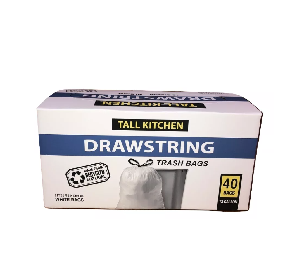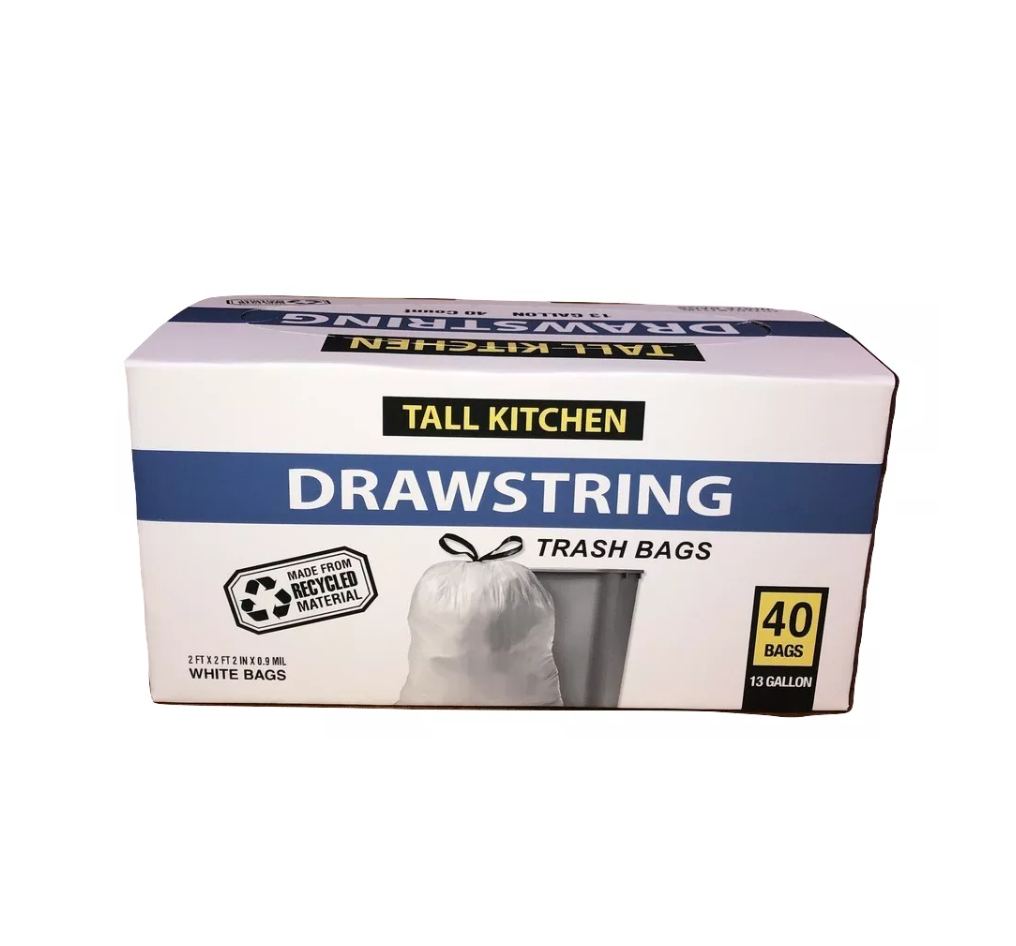 The Revolution Drawstring Kitchen Trash Bags are the perfect addition to your cleaning supplies. The drawstring trash bags are made with recycled material, making them great for everyday use. These trash bags are very durable and will fit in your 13-18 gal. trash cans.