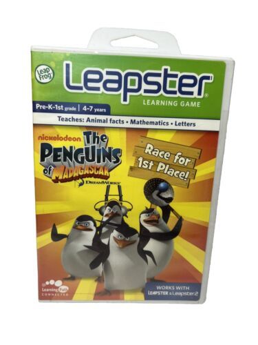 Discover the amazing world of penguins with this Leap Frog Leapster Learning Game. Join your favorite characters from Madagascar in an exciting educational adventure where you'll learn about animal facts and math concepts. This game is perfect for early childhood learners and provides hours of entertainment and learning opportunities.
