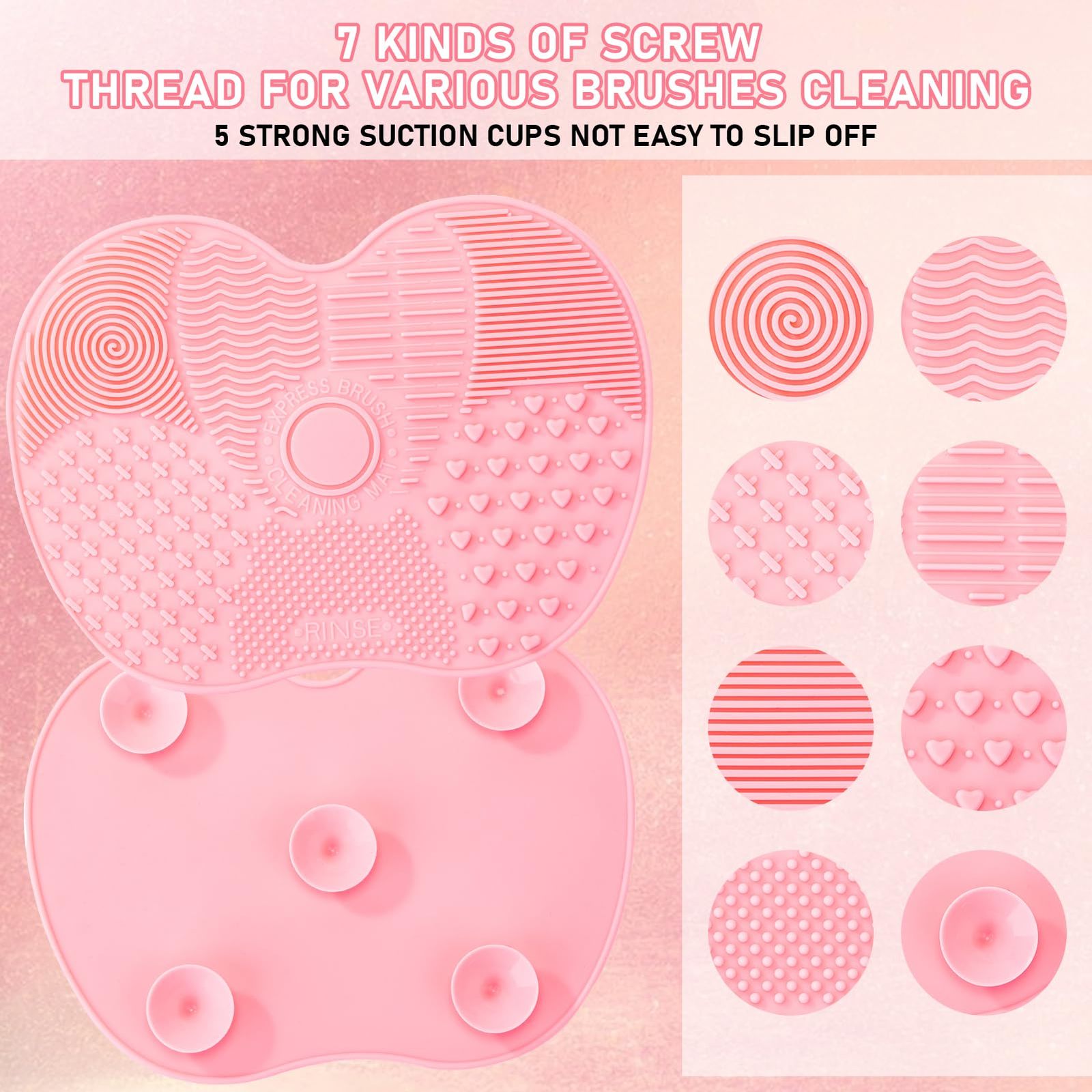 Silicone Brush Cleaning Mat: Big size makeup brush cleaning pad with suction cup, 7 kinds of screw thread design, suitable for cleaning various makeup brushes. Wet and dry makeup brush cleaner mat with color removal sponge, can be used on both sides