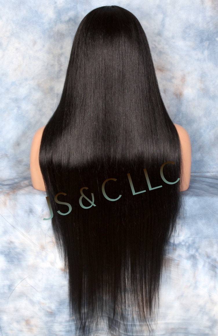 45" Human Hair Blend Lace Front Wig Hand Tied Center Part Straight Heat Safe Bla