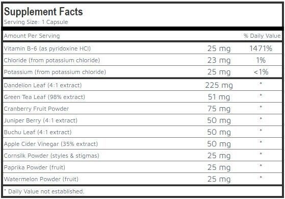 TRY OUR WATER AWAY NATURAL COMPLEX: Promote your health with the power of cranberry and other natural ingredients. Our supplement typically contains natural diuretic ingredients such as dandelion, green tea leaf, cranberry fruit powder, juniper barry, buchu lear, apple cider vinegar, cornsilk powder, paprika powder, watermelom powder.