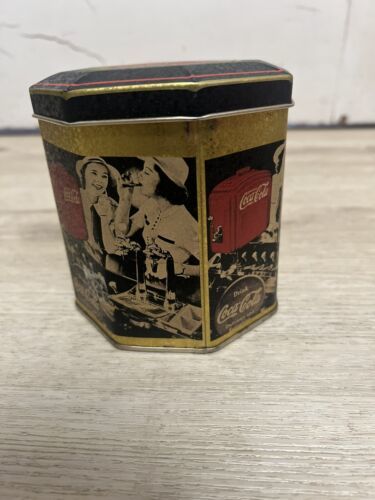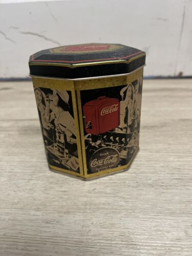 1989 Drink Coca-Cola Soda Girls Tin Octagon 4.25 in. Diameter x 4.5 in. Height
