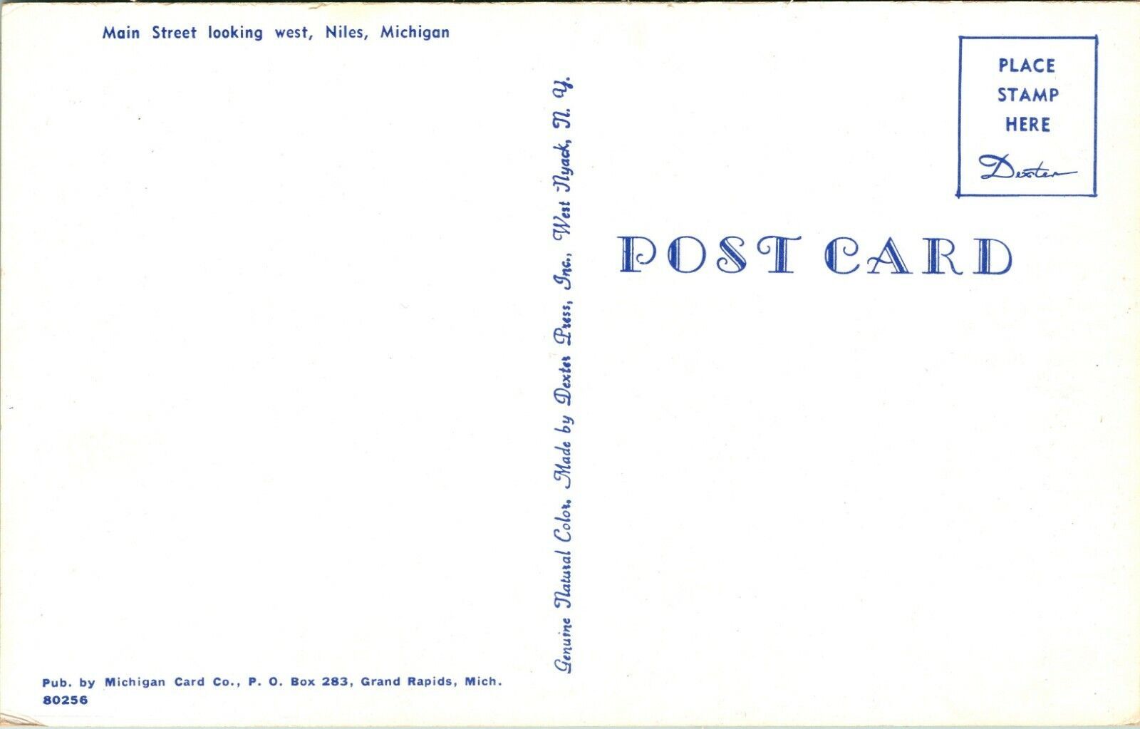 Vtg Chrome Postcard Niles Michigan MI Main Street Looking West 1950s Cars UNP