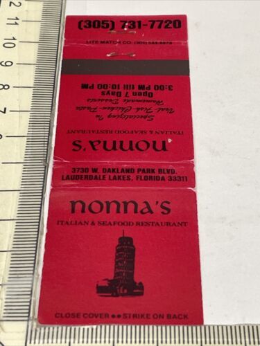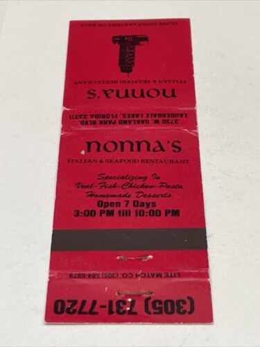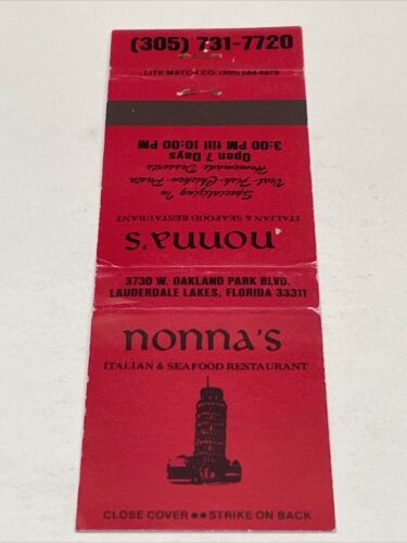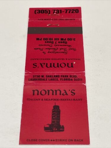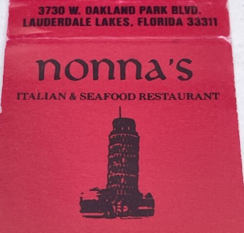 Matchbook Cover Nonna’s Italian & Seafood Restaurant Lauderdale Lakes, FL gmg