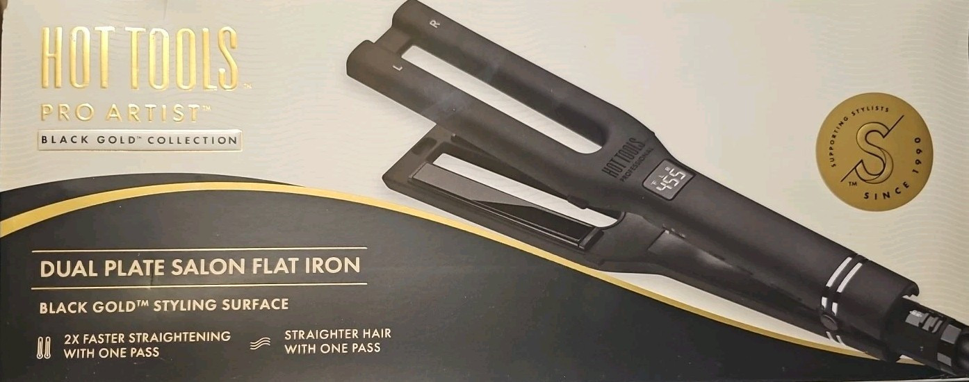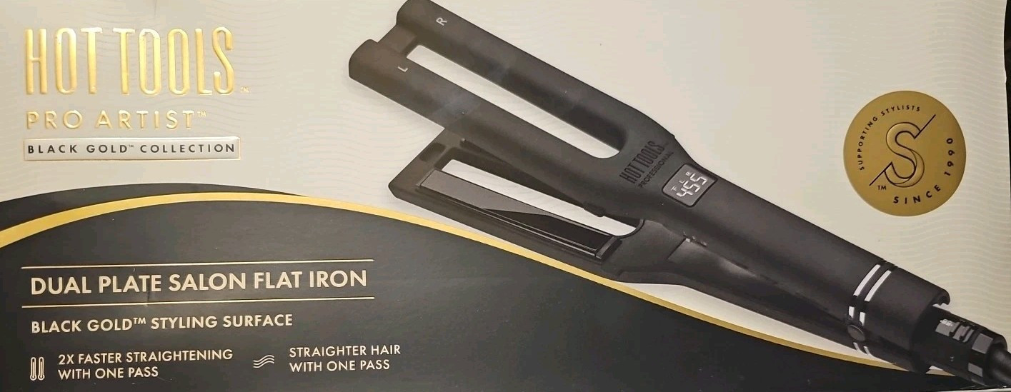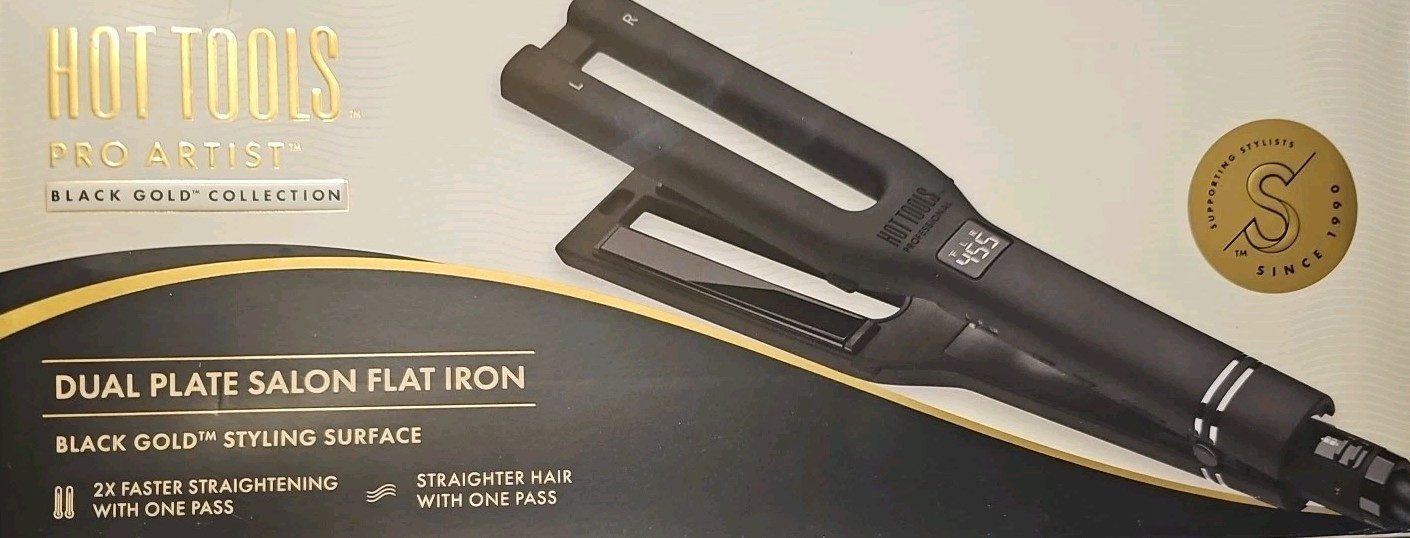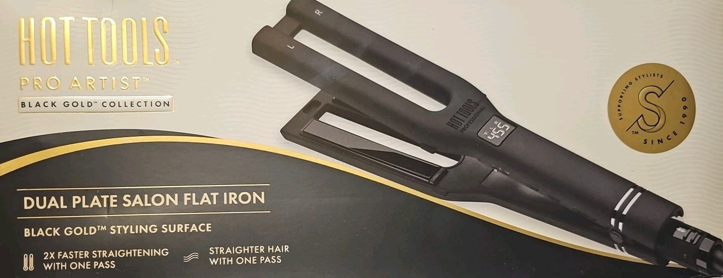 Hot Tools Pro Artist Black Gold Double Straight Dual Plate Hair Straightener...
