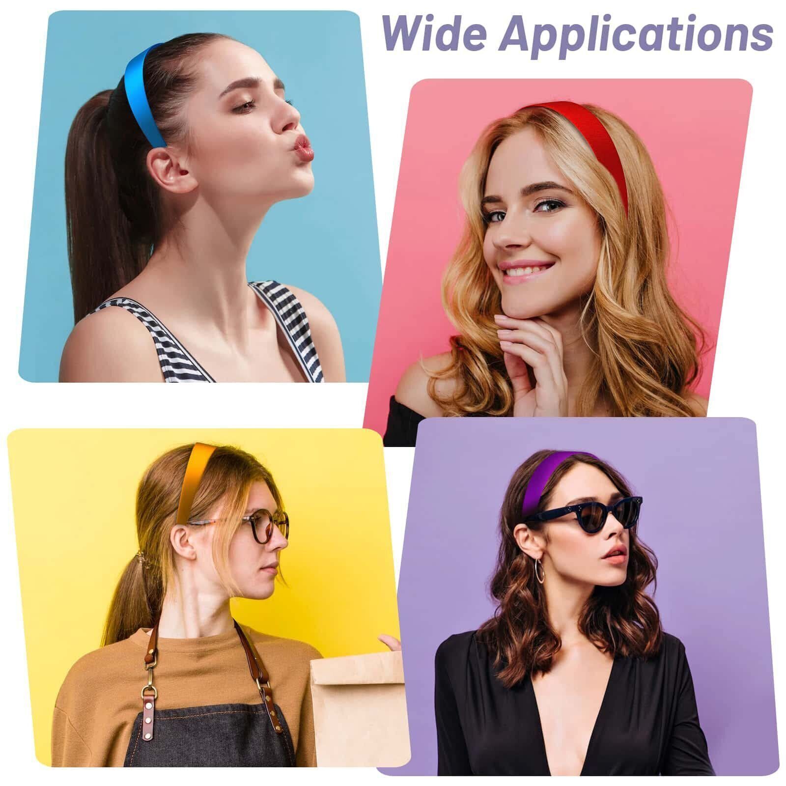 anezus 16 Pcs Satin Headbands Bulk 1 Inch Anti-slip Ribbon Hair Bands Plain Hard Headbands for Women Girls DIY Craft Hair Accessories (Multicolor)