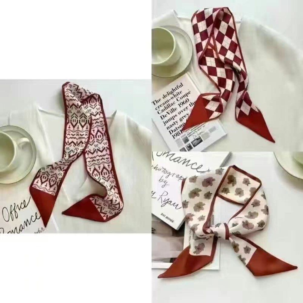 Retro small silk scarf girl heart spring and summer narrow ribbon headband headband bag decoration long scarf headdress (Red Hair Band 5pcs)