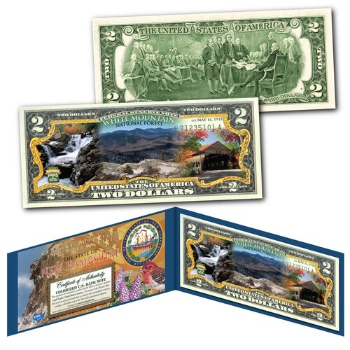 Few ideas have ever united all Americans as our devotion to our National Parks. Once, their pristine beauty and rare splendor seemed destined to become just a memory. Yet, thanks to forward-thinking leaders like President Theodore Roosevelt, our nation's irreplaceable wild heritage was protected, and the National Park Service was established in 1916. Today, these national treasures range from sea to shining sea, and across America's 50 states and territories. Now you can share in their glory with The U.S. National Parks $2 Bill Currency Collection, only from The Merrick Mint. Even ordinary $2 bills are rarely seen. In fact, they make up fewer than 1% of all currency in the United States today. These legal tender National Park Bills are even more scarce still. Each crisp, uncirculated and mint condition $2 bill in this collection features full-color imagery of a different American National Park. The front side of each bill features a stunning full-view design by The Merrick Mint with vivid color of America's unforgettable National Parks, which is truly a work of art. Each bill's back side bears the traditional depiction of the presentation of the Declaration of Independence. Plus, each currency collectible comes in a beautiful Display holder to protect the beauty and value of your heirloom collection for generations to come. In addition, each bill comes with a custom State/Park Certificate of Authenticity, depicting all objects relating to each National Park and State.
