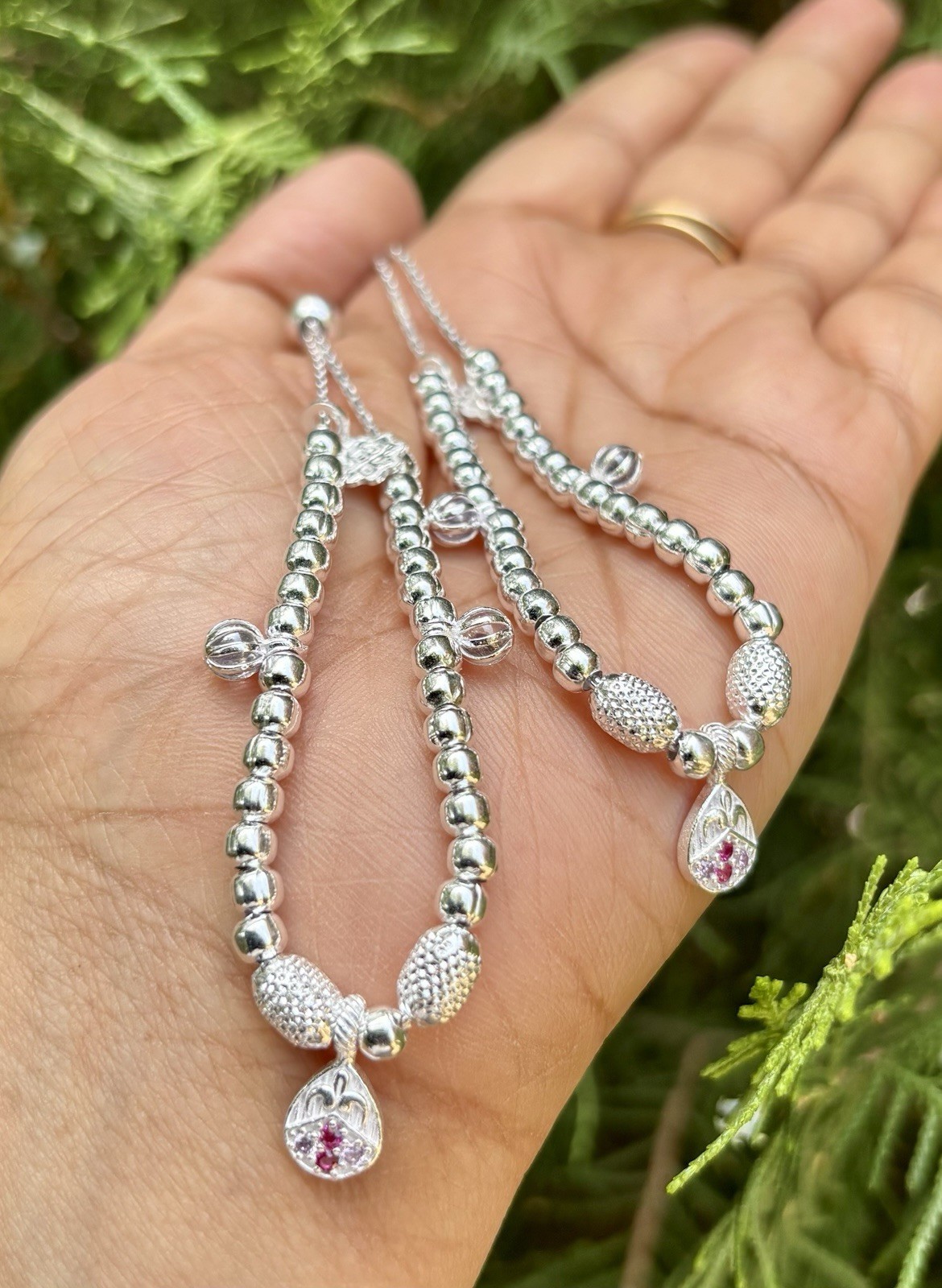 2 Pcs Bracelet de Cheville à Breloque Argent 999, Payal Réglable pour Pieds...