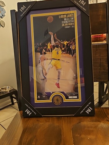 This LEBRON JAMES ROOKIE HALF DOLLAR coin is a treasured collectible, successfully combining basketball with coin collecting. Here is your opportunity to own or to gift, a beautifully colorized JFK Kennedy Half Dollar, enhanced with a beautiful colorized image of LeBron James including his rookie facsimile signature. The coin is fully licensed authorized by Upper Deck and LeBron James. Each coin comes in a premium coin capsule with a Certificate of Authenticity to guaranty that your coin is authentic and recognized by every monetary authority around the world, assuring its Collector Edition status. This uncirculated Legal Tender United States coin has been colorized with an application of special inks directly to the surface of the coin, using a unique and painstakingly multicolor coin process, which achieves a level of detail, color saturation, and durability that is #1 in the coin industry. The result is an everlasting colorized coin collectible of ultra-high quality. The Kennedy half dollar is a U.S. fifty cent coin with coin year and mint marks chosen at random.