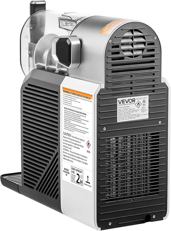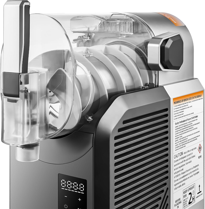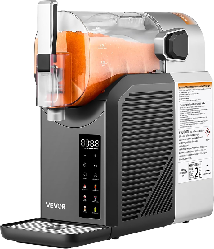 Slushy Machine for Home: Our slushy machine makes it easy to prepare a variety of alcoholic and non-alcoholic drinks, from margaritas to frozen fruit, milkshakes, and more. It comes with a recipe and is specifically designed for home users. The actual barrel capacity is 2L, while the 2L/68oz (cold drink) / 1.5L/50oz (slushy) mark on the barrel is the maximum recommended for filling liquid