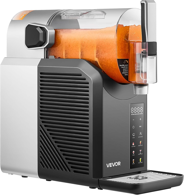 Rapid Cooling: The powerful compressor allows our slushy maker machine to make delicious frozen slushie drinks in just 15-60 minutes. Equipped with 360 rotating stirring blades, it evenly freezes the liquid, delivering a perfectly smooth texture. Note: The making time depends on the ambient temperature and is no more than 1 hour