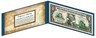 This NORTH DAKOTA State uncirculated One-Dollar Bill is Genuine Legal Tender of the United States, which has been enhanced with beautiful iconic images of the State. The green-and-white colorized images are accomplished through a revolutionary new authentic genuine colorization process pioneered by The Merrick Mint, creating a collectible work of art. Included is a blue display portfolio plus a Certificate of Authenticity to guaranty that your bill is authentic and recognized by every monetary authority around the world, and assuring its Collector Edition status. Only genuine Legal Tender $1 United States Bills are used for this unique colorization process. Each $1 Bill is in FRESH, CRISP, UNCIRCULATED condition, and was directly removed from untouched wrapped Federal Reserve sealed packs. The first U.S. President, George Washington , is featured on the obverse, along with the special colorization overlay. The Great Seal of the United States is featured on the reverse.
