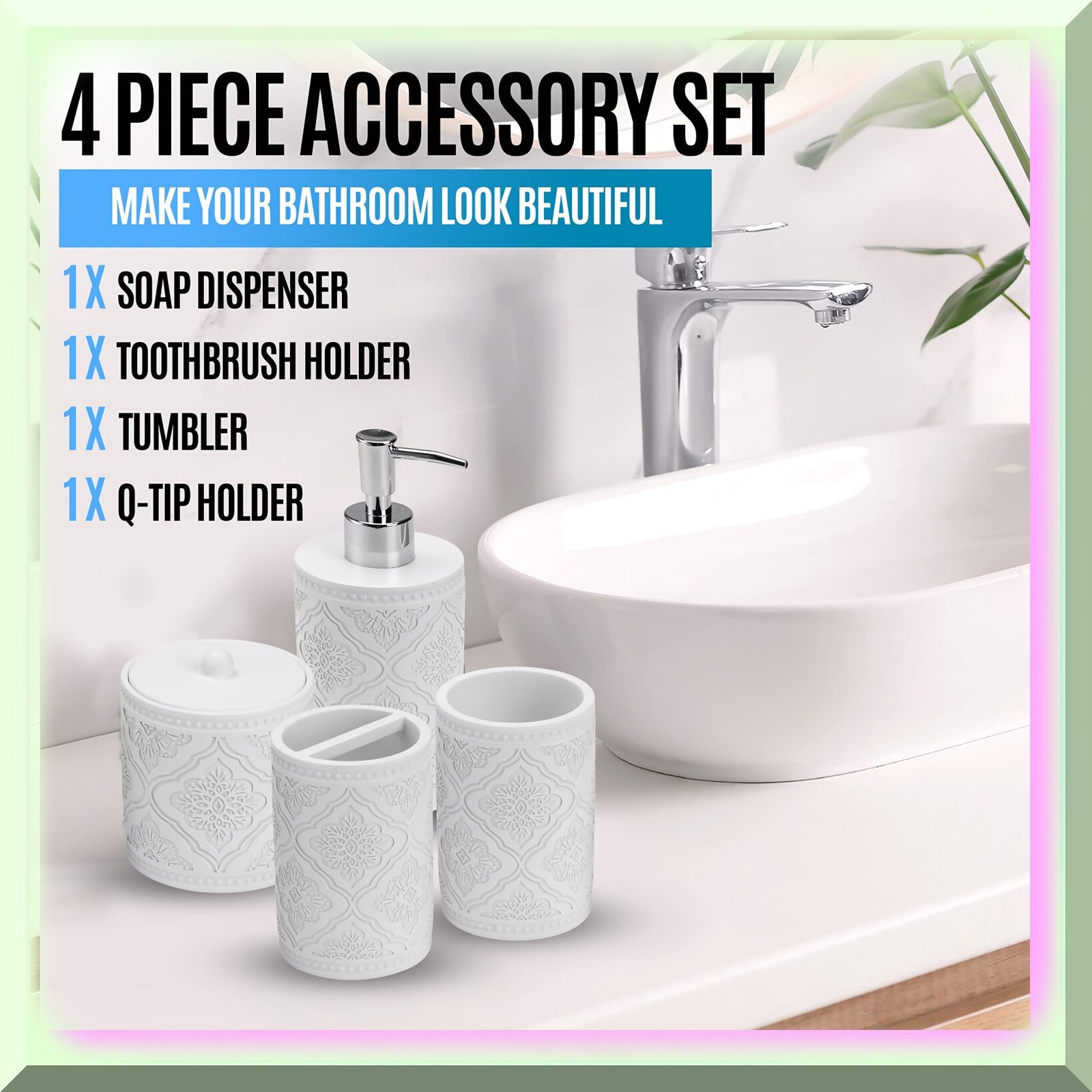Arabesque 4-Piece White Bathroom Accessory Set