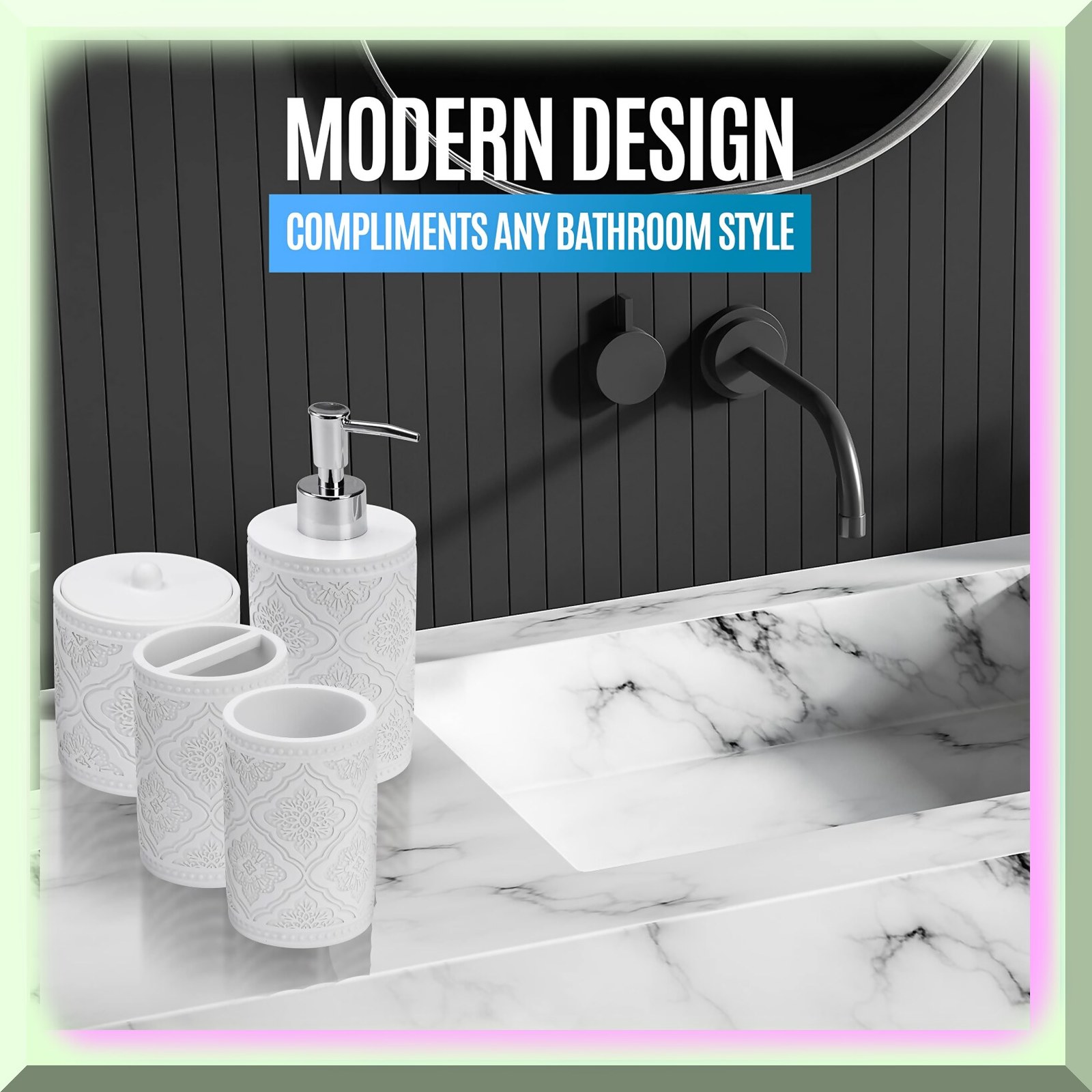 Modern embossed bathroom accessories set in sleek design