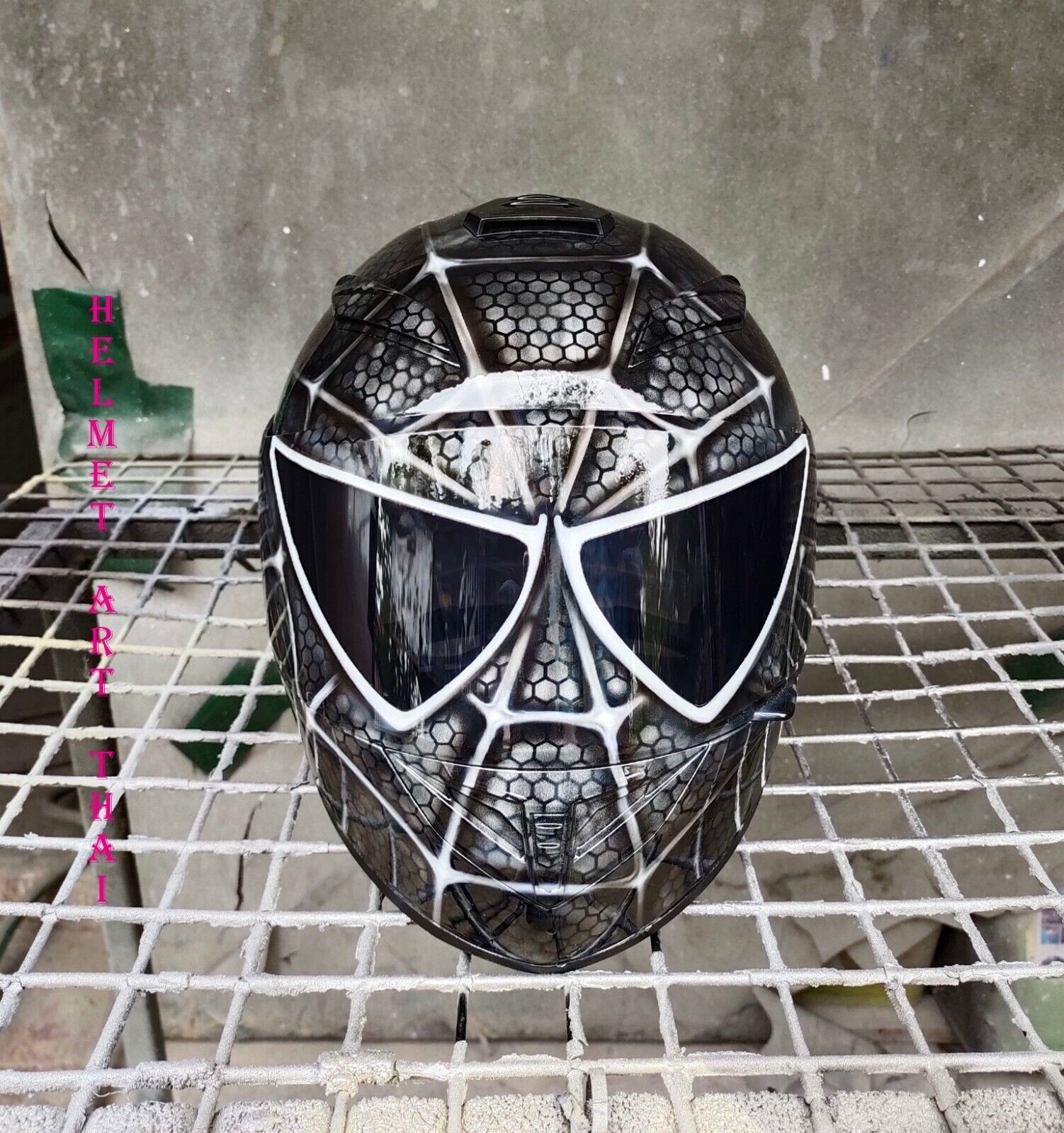 BLACK SPIDER MAN CUSTOM AIRBRUSH MOTORRADHELM