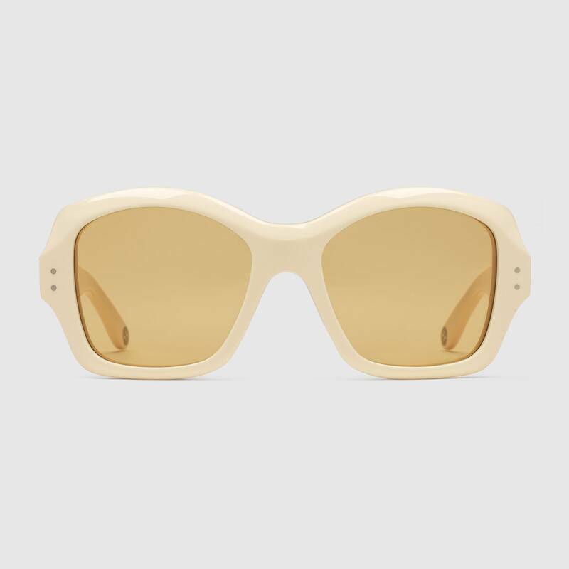 NEW Gucci Sunglasses GG0624S 002 Ivory/Yellow Lens Design 57mm