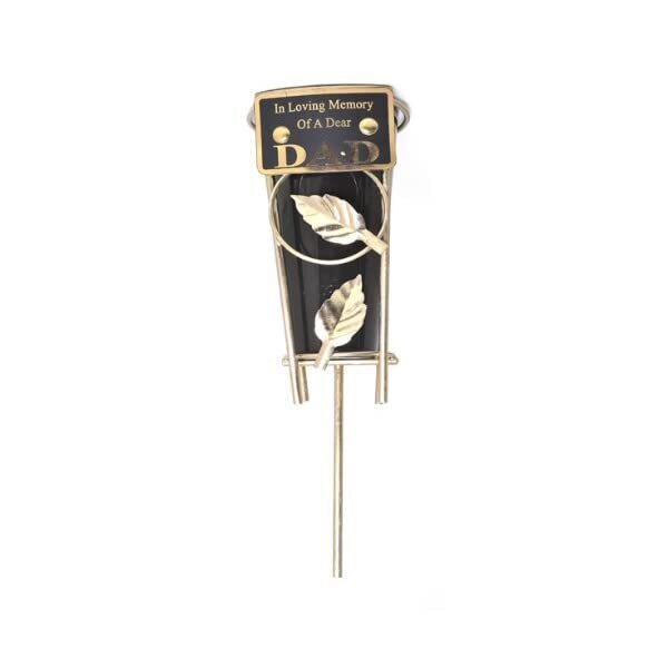 Product Name: Cemetery Grave Vase with Metal Spike - In Loving Memory of a Dear DAD plaque. Includes black plastic insert vase.