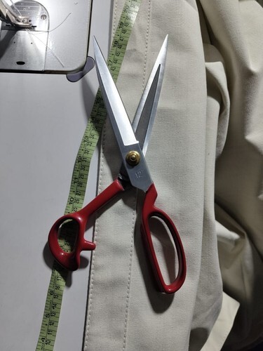 This is one pair of Dubl Duck scissors shears, measuring 8 1/4 inches in length. Made of ice tempered stainless steel. They are designed for professional use. These scissors are specifically used for grooming purposes, particularly for dogs; however, they have been primarily used in a household to cut paper up to this point.