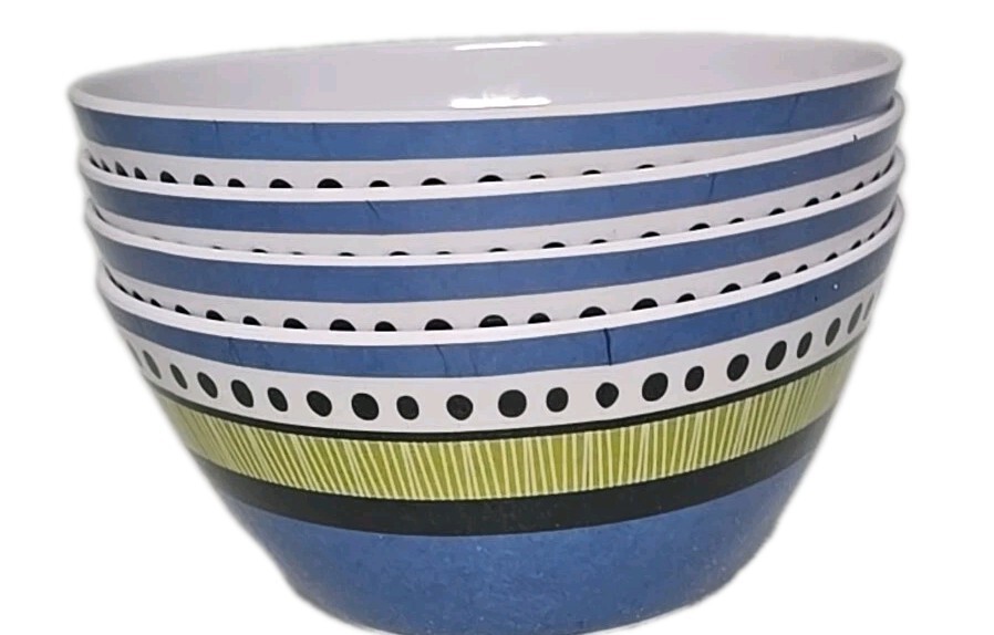 Four (4) BRYLANEHome ~ Melamine ~ ALMIRA ~ 6" X 2.75" ~ Multi-Colored Bowls (3)