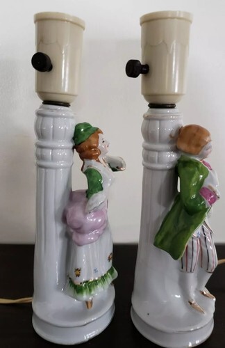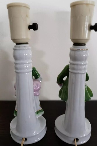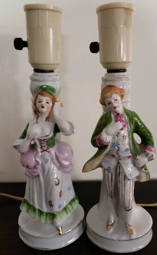 Set of Two (2) Vintage Colonial Lamps Ceramic/Porcelain 9.5" Tall Made in Japan