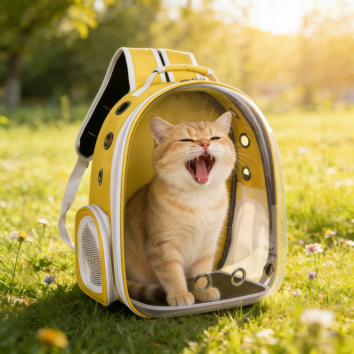Equipped with a soft yellow lining, it provides a cozy, cushioned space for pets to rest during carrying, enhancing their comfort on trips.