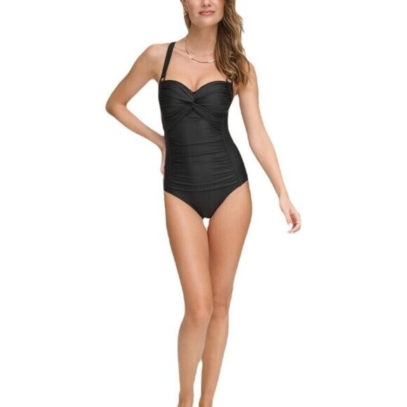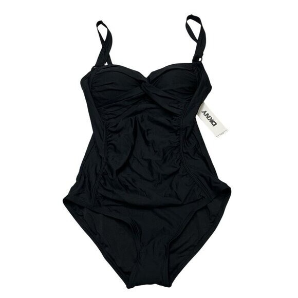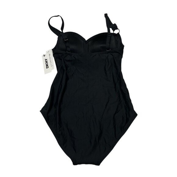 DNKY Swimsuit Womens M Black One Piece Sweetheart Neck Ruched Bathing Beach