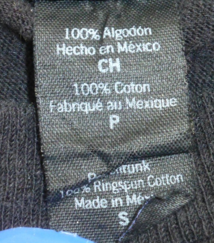 Chest width = 17 inches, Body length = 24 inches, Sleeve length = 6.5 inches