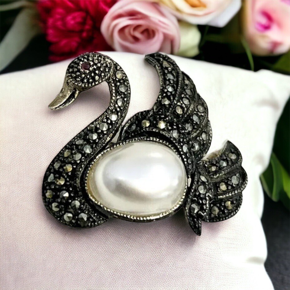 Sterling Silver 925 Marcasite Faux Pearl and 39 similar items
