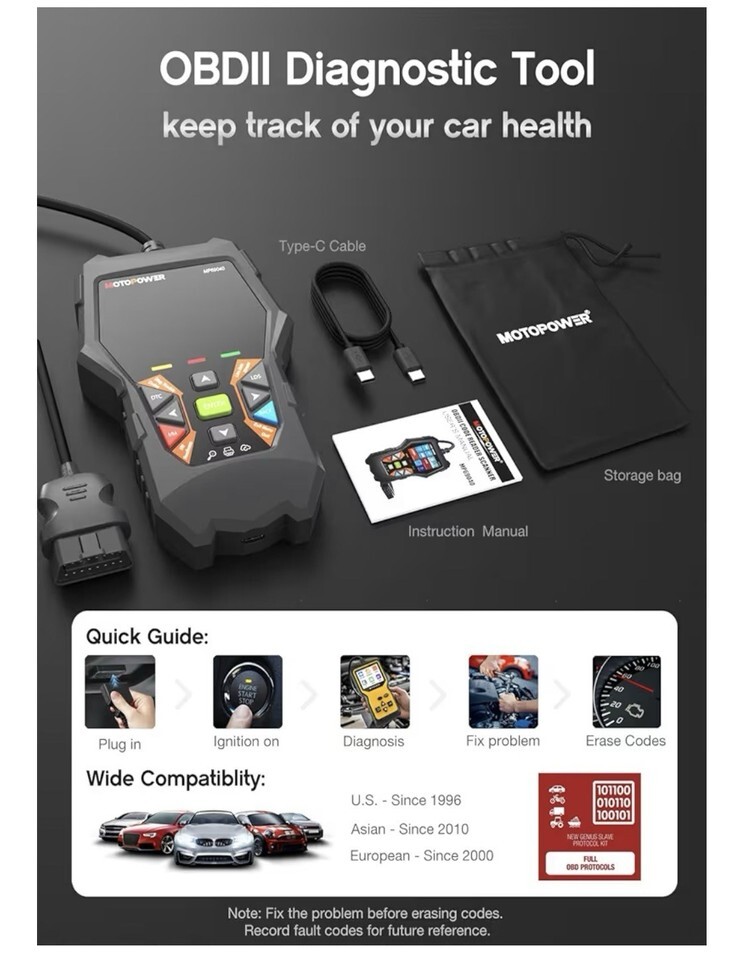 Code Reader X 1, Type-C Cable X 1, Instruction Manual X 1 |