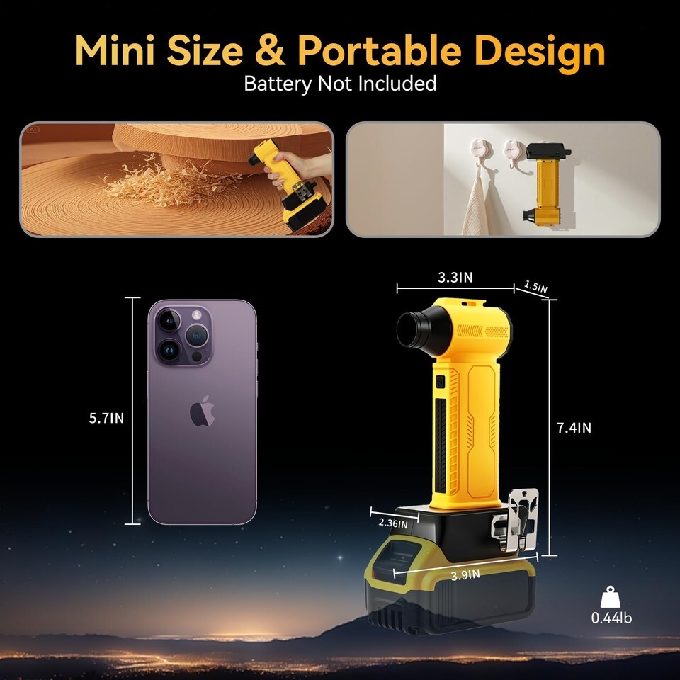 ??Compact Size Portable?This air blower is made of durable ABS material with compact design, weighs only 0.44lbs(without battery), which is very easy to carry and convenient to storage. And the non-slipped handle is ergonomic which can provide a firm grip when using.