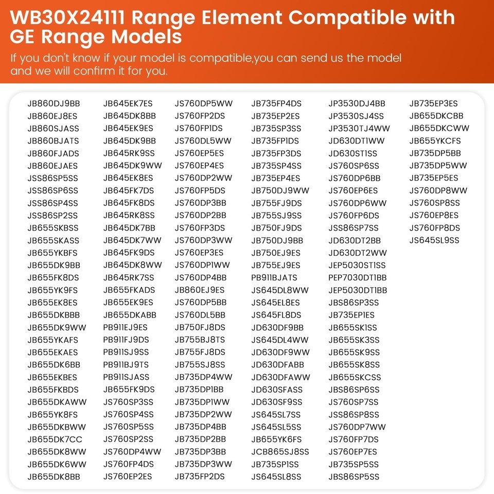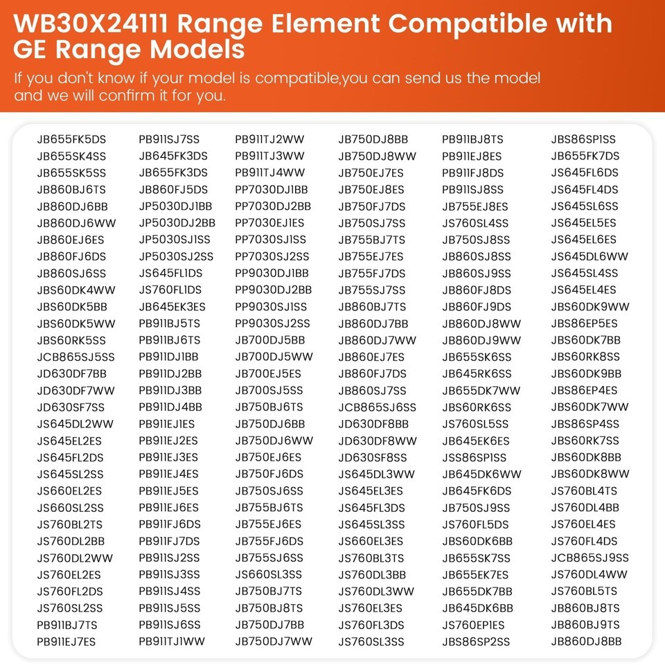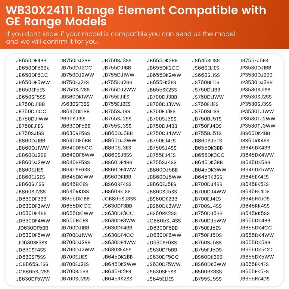 ??????? ??????????- WB30X24111 WB30T10133 9" dual radiant element compatible with GE, Hotpoint range stove cooktop.?Replace part numbers: 1474218, PS2321567, AP4345739, 2512343818, WB30X24111.?Suitable stove model numbers: JB650DF4BB, JB650DF5BBk, JB650DF5CC, JB650DF5WW, JB650EF5ES, JB650SF5SS, JB750DJ1BB, JB750DJ1CC, JB750DJ1WW, JB750EJ1ES, JB750SJ1SS, JB860DJ1BB, JB860DJ1WW, JB860DJ2BB, JB860DJ2WW, JB860EJ1ES, JB860EJ2ES, JB860SJ1SS, JB860SJ2SS, JD630DF3BB ( ?????? ??? ????? ??? ??? ???? ?? ?????????? ??????. If you're unsure about the compatibility, send us your model number and we can help you confirm if it fits or not.)