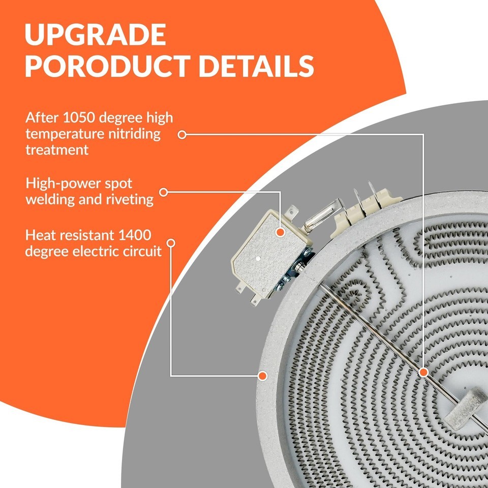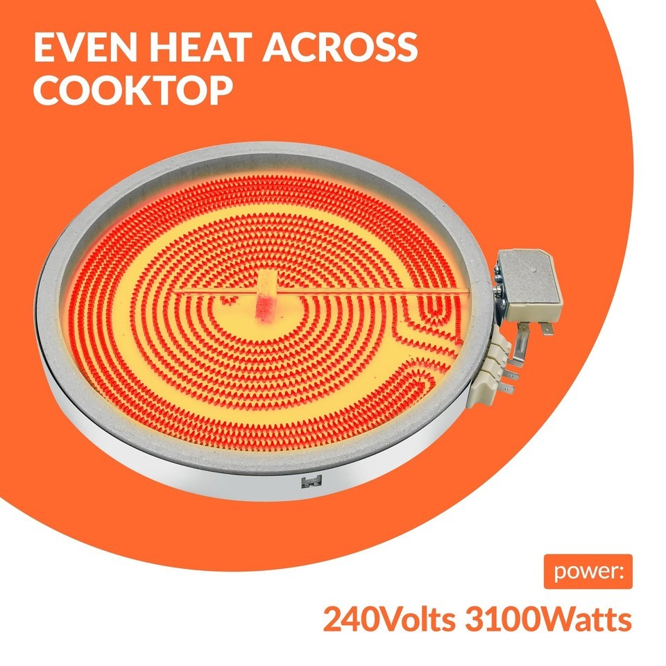 ???????? ???? ????????????- Equipped with advanced dual radiant heating technology, the new upgrade radiant WB30T10133 distributes heat evenly across the entire cooking surface. The WB30T10133 range element is made of glass ceramic and conducts heat to the burners through its metal coil and heats up quickly. Its durable design ensures long-lasting performance and resistance to wear and tear Caution:The radiant element outer ring ismade from compressed materialbound with fibers.Therefore,if there is a crack in the edge of WB30T10133 9" Dual Radiant Element is a normal phenomenon,willnot cause safety problemsand have no impacton performance and lifespan