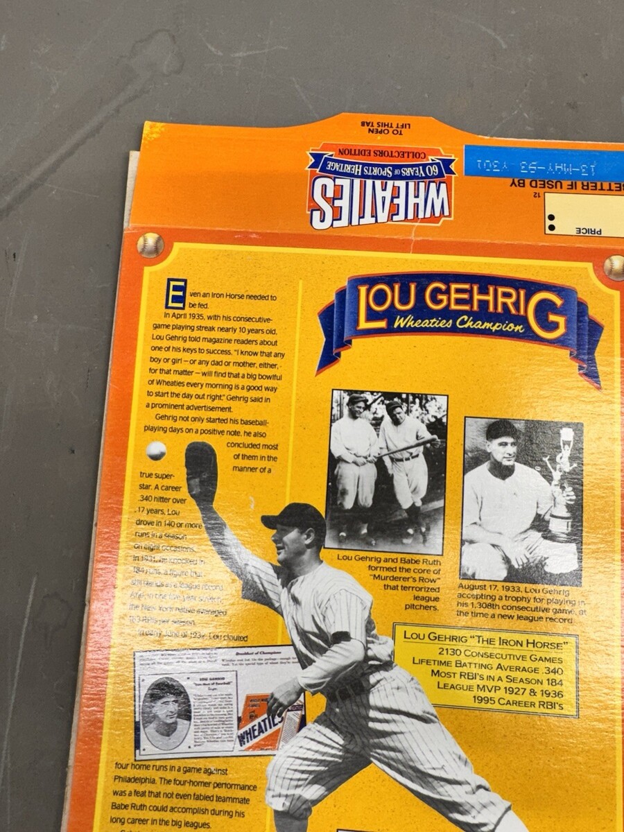 Vintage Lou Gehrig New York Yankees Wheaties Box Collector Edition Bronx Bombers