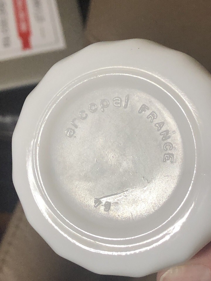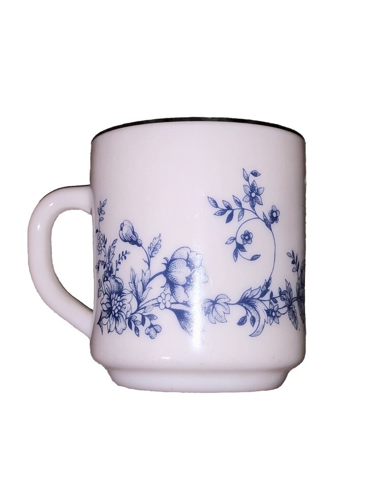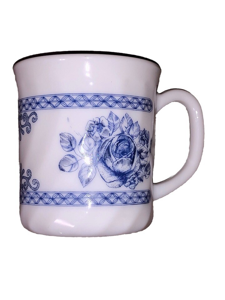 2 Arcopal France Honorine Blue Rose & Glenwood Coffee Tea Mugs Cups Milk Glass