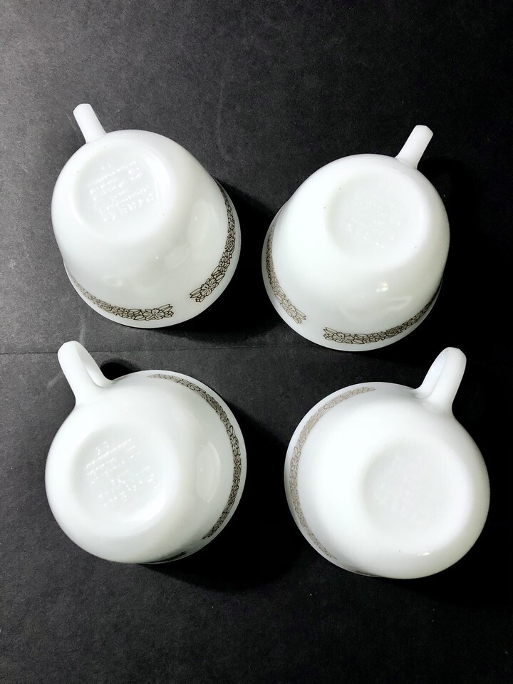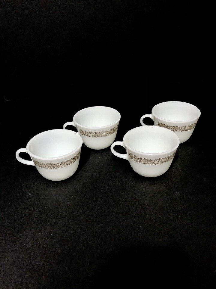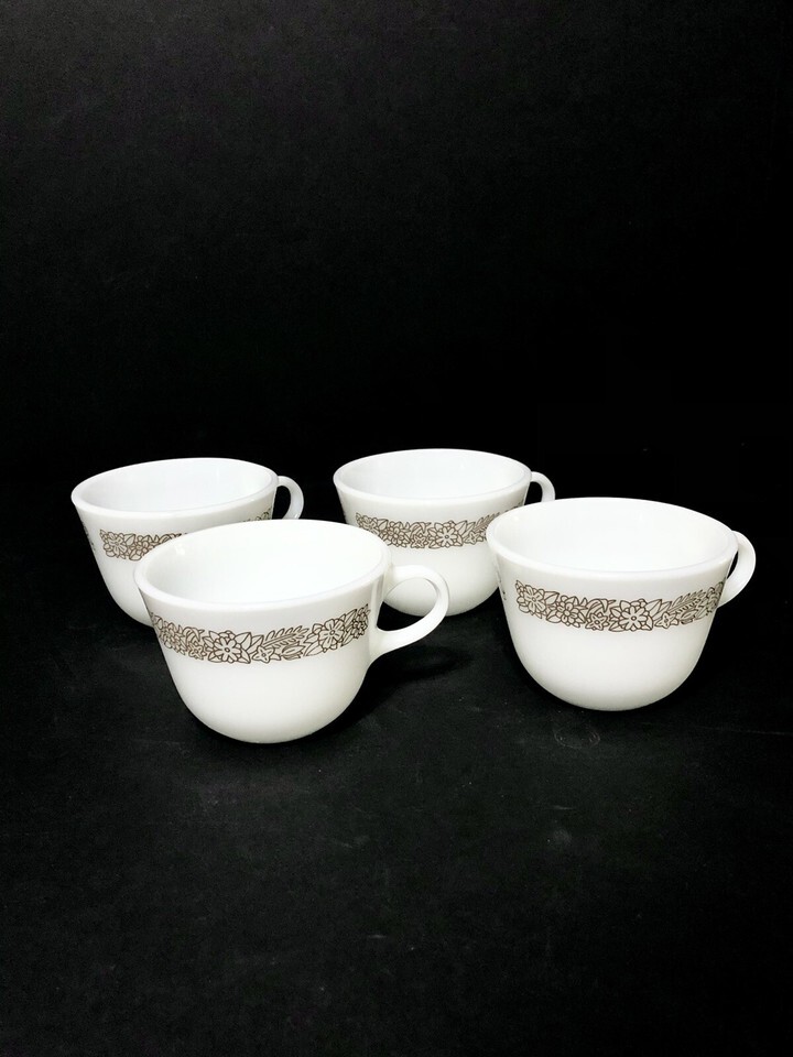 Vintage Pyrex Woodland Coffee Tea Mug Cups Lot Of 4 Brown Floral Milk Glass