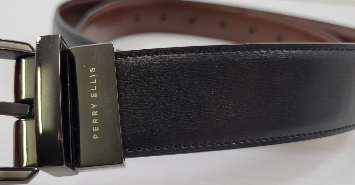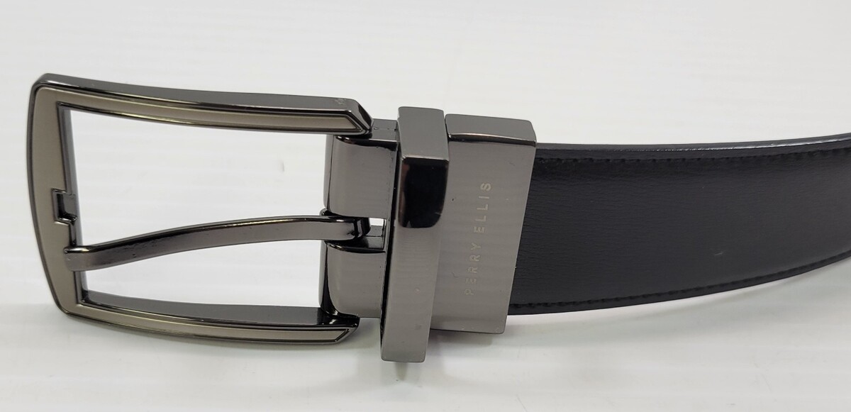 LL) Perry Ellis Portfolio Genuine Leather Reversible Brown Black Dress Belt 34