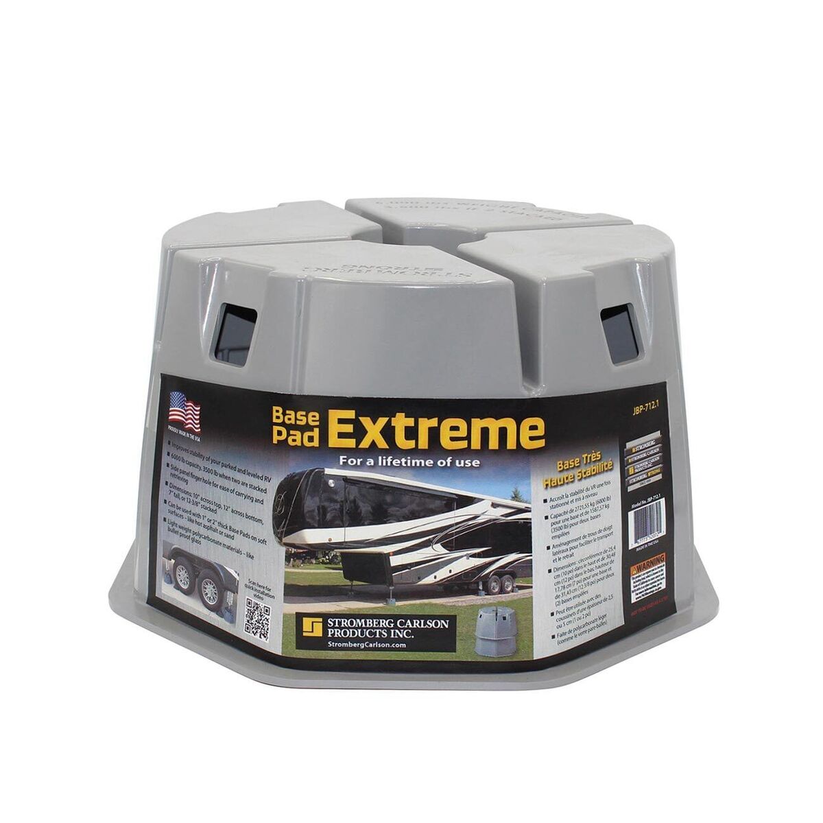 Stromberg Base Pad Extreme improves stability of your parked and leveled RV. Boasting a muted slate gray color that blends in better than competitor's pads and a lower profile to fit under smaller units as well as units with a higher clearance, you won't be disappointed!