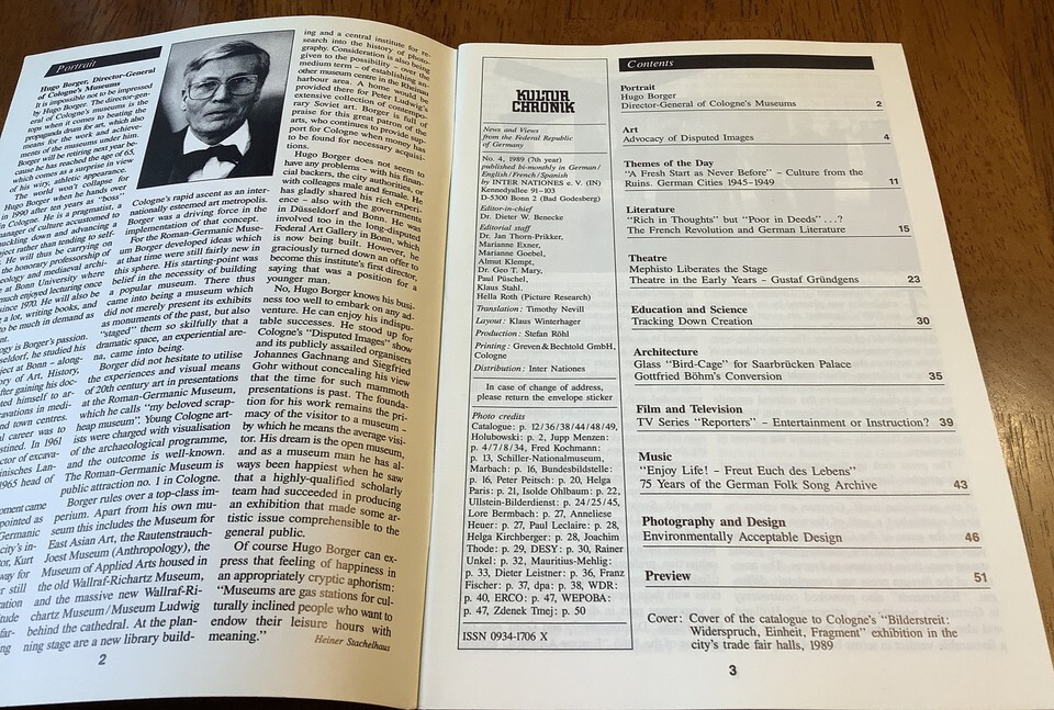 Kultur Chronik 4/1989 English Edition. Ex-lib in good condition. News and views from the Federal Republic of Germany. Feel free to email with questions. I do combine shipping on multiple purchases. Have a great day!