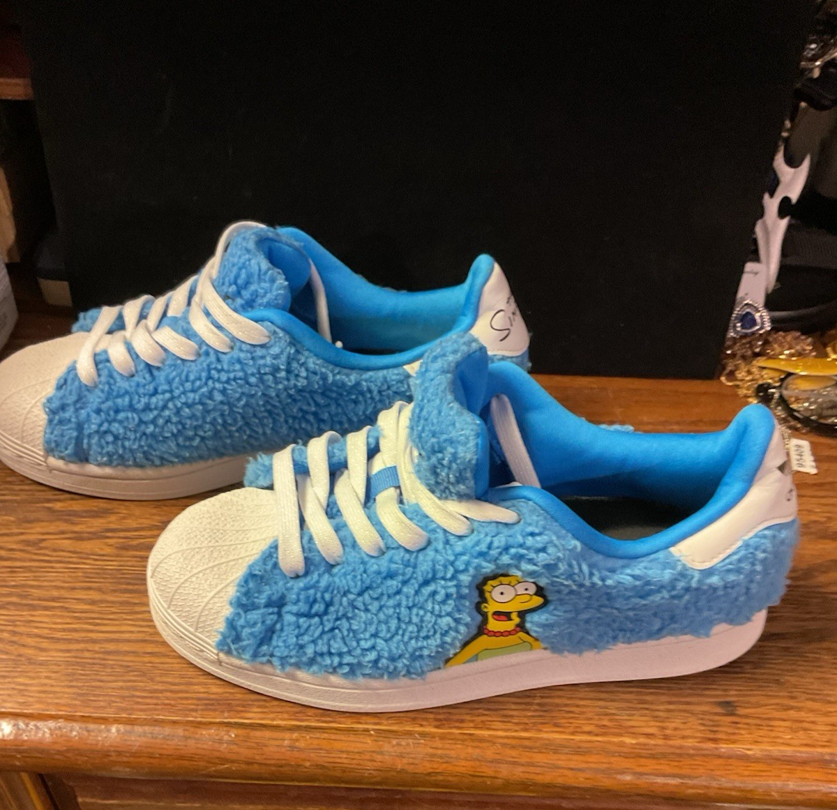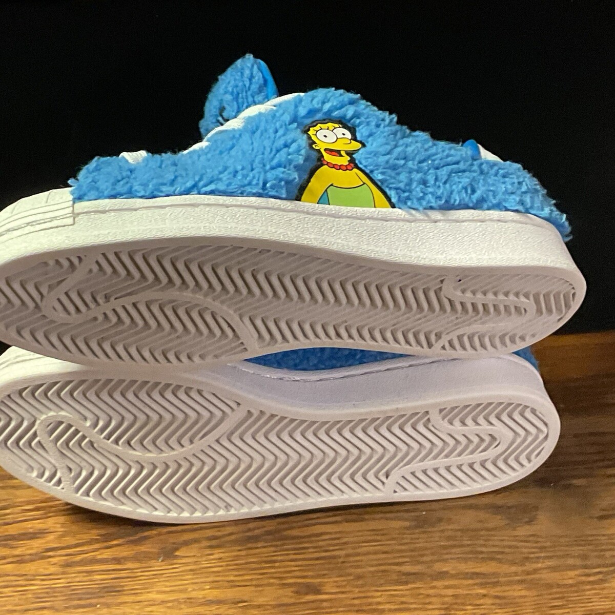 The adidas Superstar x The Simpsons Low Marge Simpson Shoes in size 5 for kids are a stylish and fun option for young fans of both adidas and The Simpsons. Featuring a low top design, lace-up closure, and a blue color scheme, these sneakers showcase the iconic character Marge Simpson in a playful and creative way. Made with fabric upper material, these athletic shoes are part of the adidas Superstar product line, known for their comfort and durability. Perfect for both boys and girls, these sneakers are a great choice for kids who want to add a touch of playful charm to their footwear collection. SEE PHOTOS