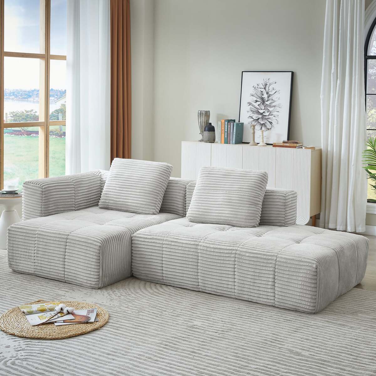 Modern Minimalism:Elevate your living space with our minimalist modular sectional sofa set. Featuring clean lines and soft Sherpa fabric, it brings an eternal and chic atmosphere to any home decor, showcasing your unique taste