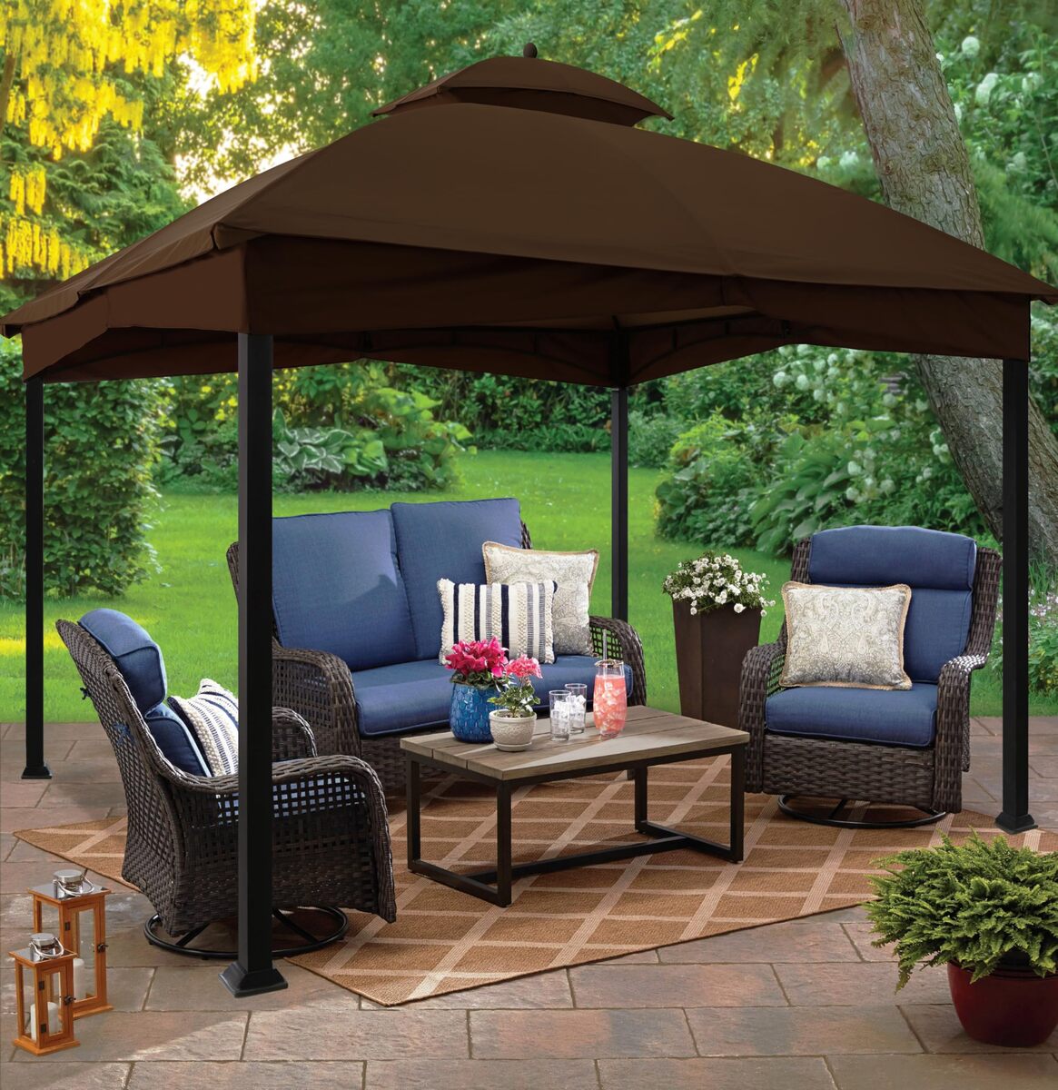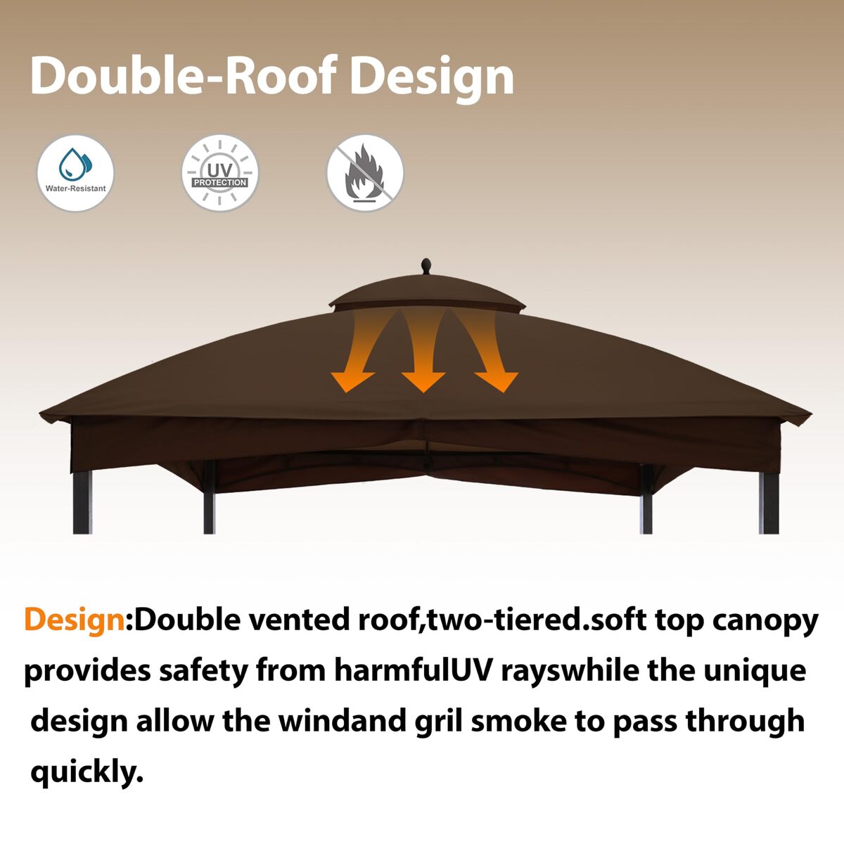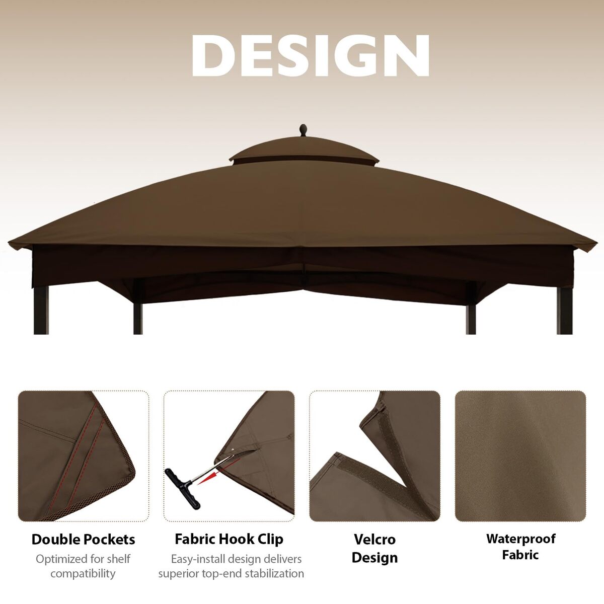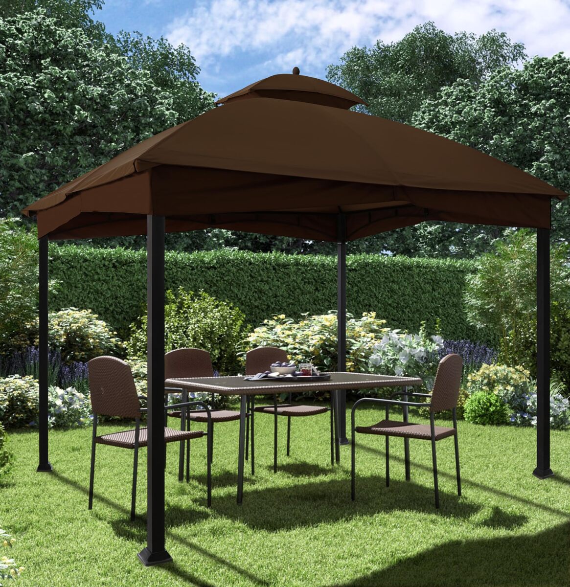 10x12 Replacement Gazebo Canopy Top for Lowe's Allen Roth GF-12S004B-1 ? Heavy Duty Brown Roof Cover with Mesh (Replacement Top Only)