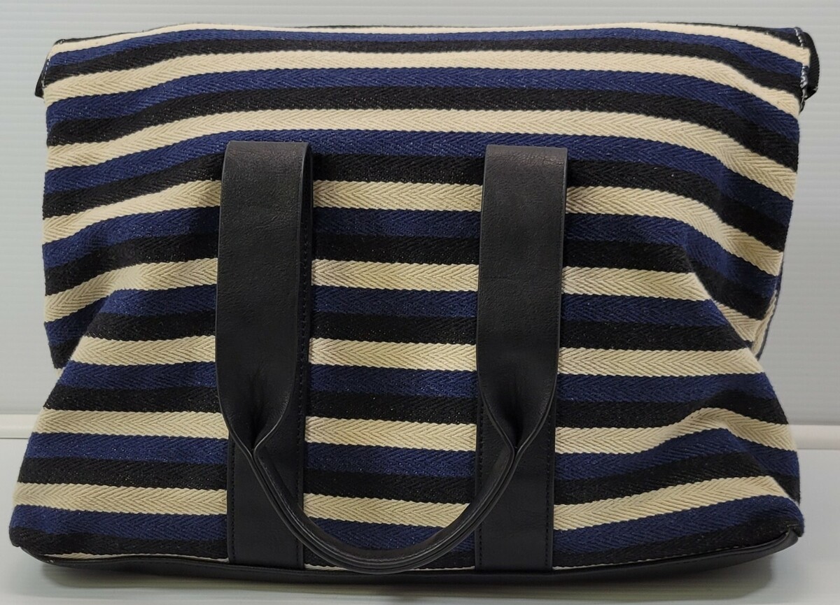 Splendid Women's Hobo Tote Cotton Striped Bag Blue Black White