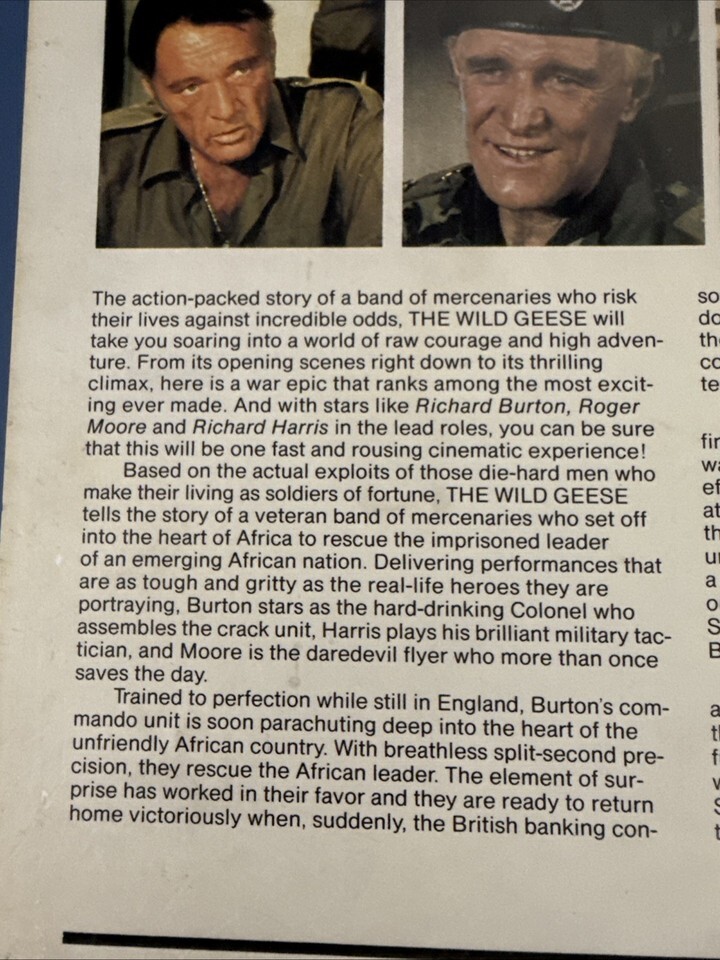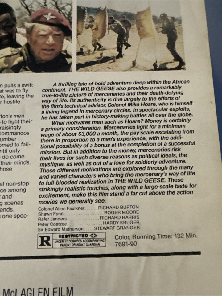 The product is a part of the movie "Wild Geese" in RCA Videodisc format. This videoDisc is only the second part of the film, providing a unique viewing experience with high-quality visuals and sound. The format allows for a clear and detailed picture and sound, making it a must-have for movie enthusiasts looking to add this classic film to their collection.